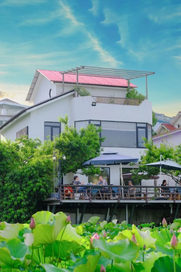 小楼莲花中不少游客在品茶。