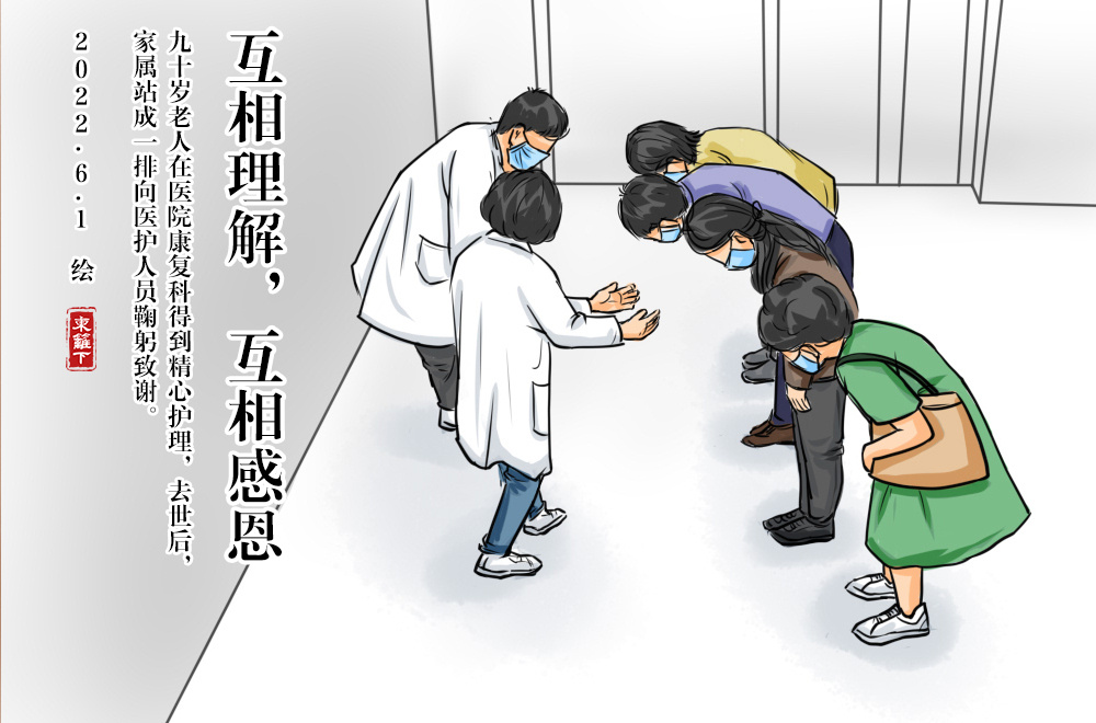 近日,浙大四院监控捕捉到一个温暖画面:四名家属站成一排向医护人员深深鞠了一躬,措手不及的医生也下意识向他们鞠躬回礼…… 原来这四名家属是陈老先生的子女,90岁的陈老先生做完脑出血手术后,在康复科度过了最后的时光。 大儿子还手写了一封感谢信:“月有阴晴圆缺,人有悲欢离合,慈父于4月23日8:04离开。万分悲痛的同时,我们非常感谢全体医护人员,给予了父亲生前精心医治,细心护理,无比感谢。”