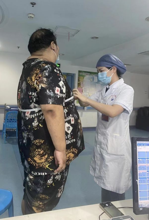 刘先生的腰围严重超标。通讯员尹茜 摄