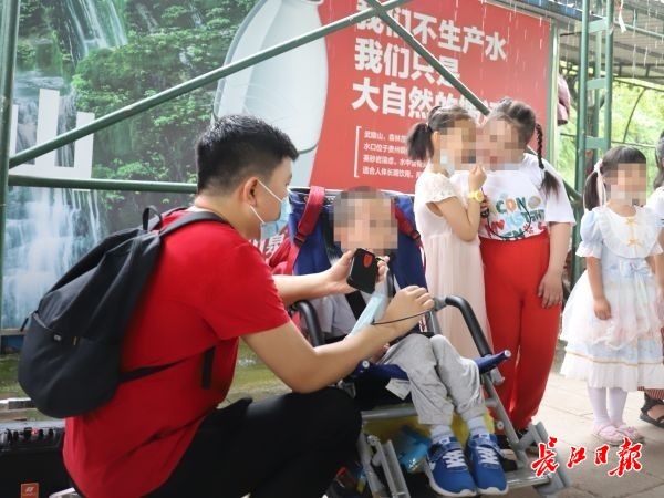 到达景区后,天空便下起了瓢泼大雨,医护志愿者、家长们早已备好雨具,有序安排组织。“我来推轮椅,把它反转过来,慢慢倒退着下坡”“这位家长您照顾孩子,我来给您撑伞。”发生在医护志愿者身上的一幕幕感人画面,从活动开始到结束,整整4个小时,往来而不绝。