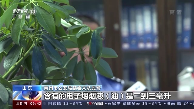 青州市公安局禁毒大队 民警:有电子烟这种套装,就是电子烟杆加上烟弹,一个烟弹中含有的电子烟烟液(油)二到三毫升。其中的两个邮包中我们发现了有十毫升,以及二十毫升装的瓶装合成大麻素烟油。截获该笔邮单的同时,将当地的另一名重要犯罪嫌疑人蒲某抓获到案。