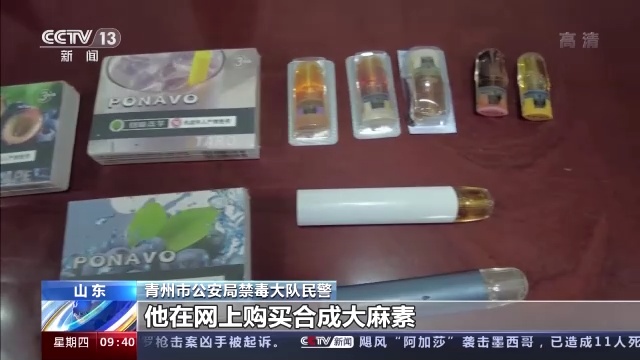 青州市公安局禁毒大队 民警:他在网上购买合成大麻素,购买正常这种电子烟,然后他把合成大麻素添加到电子烟的烟油当中,制作成烟弹,然后利用这个电子烟进行合成大麻素这种毒品吸食。
