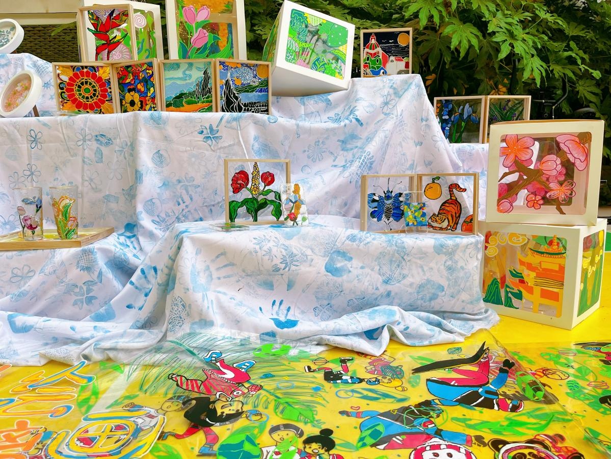 在彩绘玻璃社,学生们用玻璃画颜料在玻璃上作画,阳光照射在玻璃上,有了五彩斑斓的光影效果。彩绘玻璃社的学生们介绍,玻璃画的应用很广泛,平时在老师的引导下,他们在透明手机壳、玻璃杯、杯垫上作画,给日常生活增添了不少色彩和乐趣。