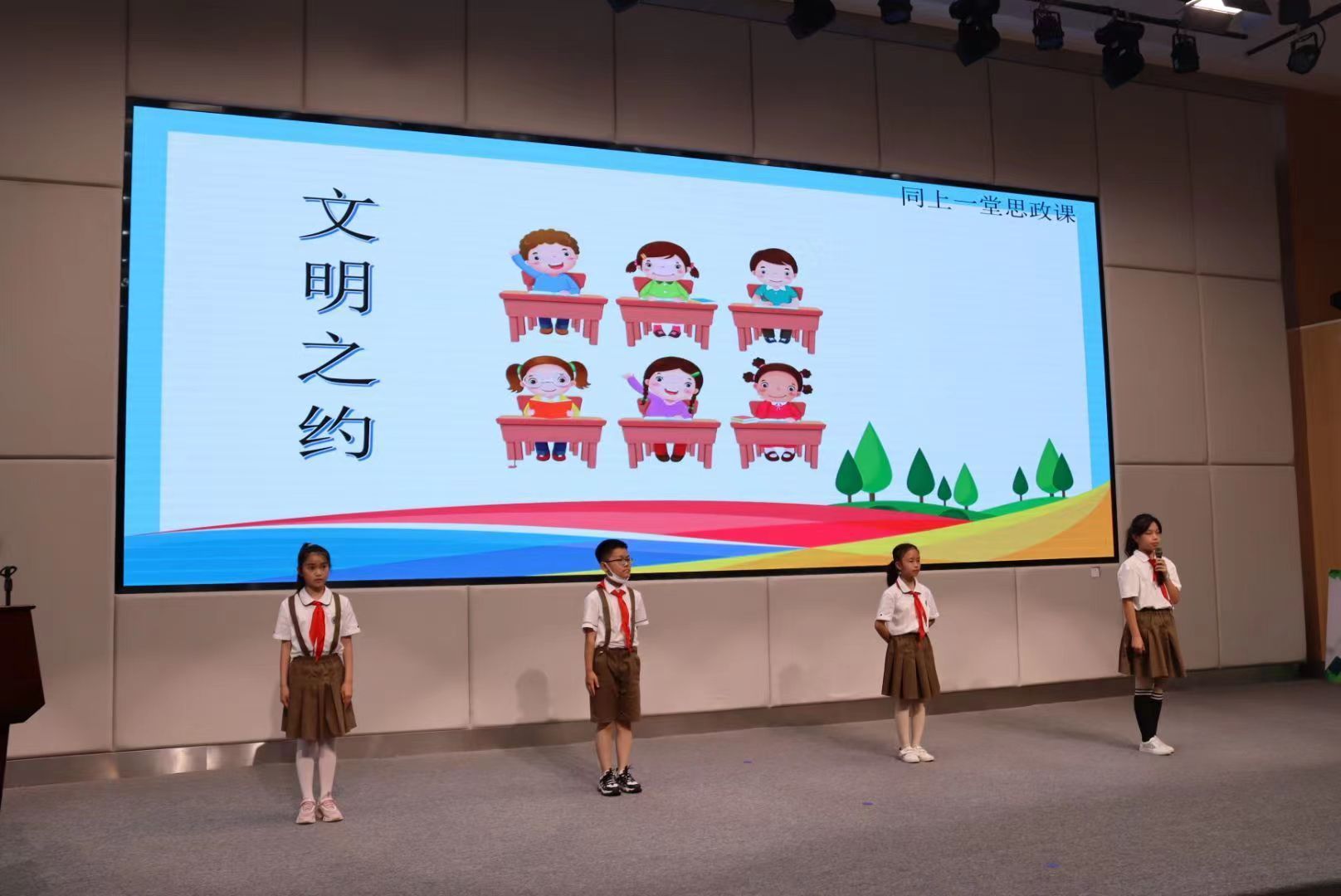 近日,东西湖区吴家山第四小学开展“小手拉大手 文明齐步走”文明实践日活动,活动以线下主题展演和线上直播形式进行,吸引全区1万余名师生及家长参加。“六一”期间,我市中小学结合争创全国文明典范城市,组织文明行为倡议活动,倡导文明风尚,引导学生知礼仪、守规范,做讲文明树新风的表率。蔡甸区组织开展“同上一堂思政课 共赴文明之约”主题活动,长春街小学蔡甸分校老师、家长、学生三方分别围绕垂范、表率、践行三个关键词,共话创全国文明典范城市之约。