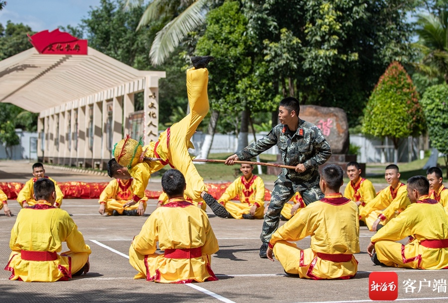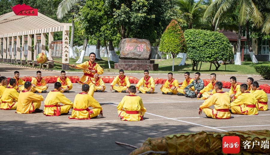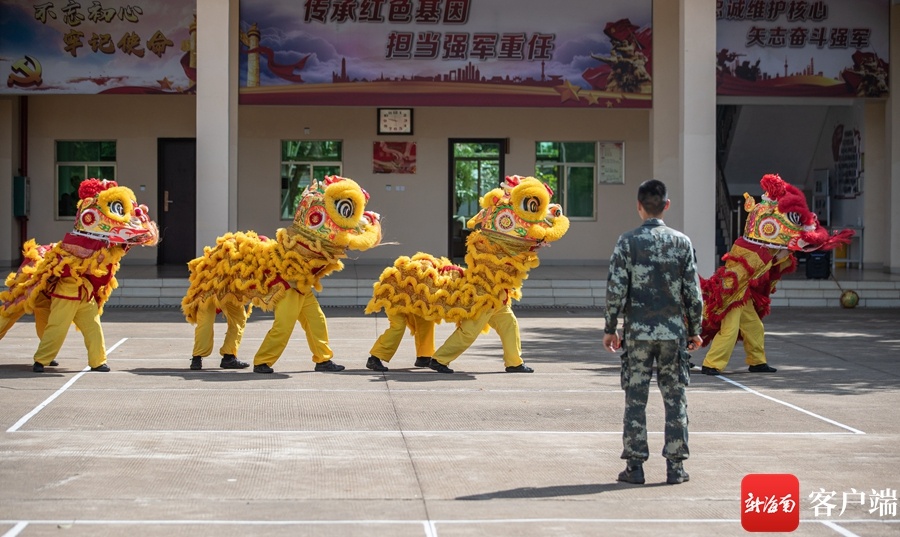 和该中队驻地相邻的中队,则将舞狮作为特色文化活动,两支中队常在一起训练、表演,为官兵们搭建了一个展示自我的平台。“我是狮尾,和我一班哨的李智杰是狮头,他比我大三岁,从我下队时就一直带着我。”19岁的新兵郑康说,两人在训练时配合默契,“不管动作难度有多大,我们可以永远相信身后的战友。”