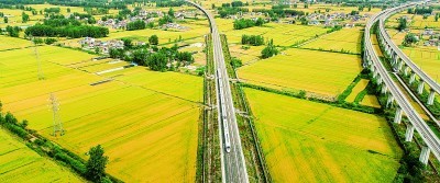 小满已过,芒种将至,江苏省淮安市470余万亩小麦长势良好,即将开镰收割。图为5月26日,一列高铁列车驶过麦田。新华社发