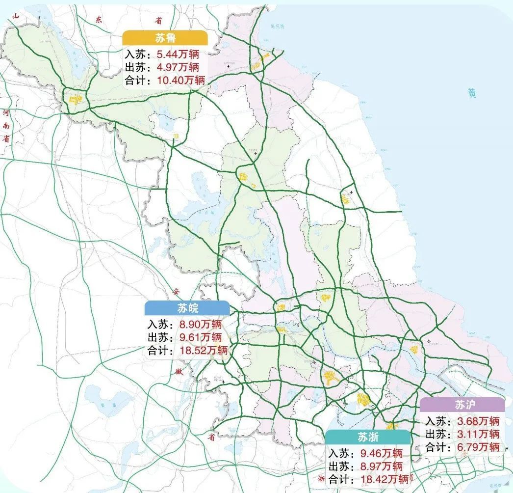 端午期间,全省高速公路省界通道总流量预计将达54.1万辆次/日左右,较去年同期下降约30%,较2022年五一增长35%左右。其中,受上海疫情形势影响,预计苏沪省界流量最低,仅为6.8万辆/日。