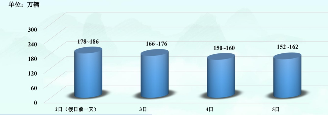 随着全省生产生活秩序逐步恢复,近期高速公路路网流量稳步回升。预计端午期间高速公路路网流量将会达到近期流量高峰,日均出口流量将达161万辆左右,较2022年五一(72.38万辆)增长约122%。但较去年同期下降约37%,较2021年日均流量下降33%,总量依旧处于相对较低的水平。