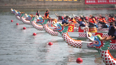 赛道上龙舟飞驰竞渡