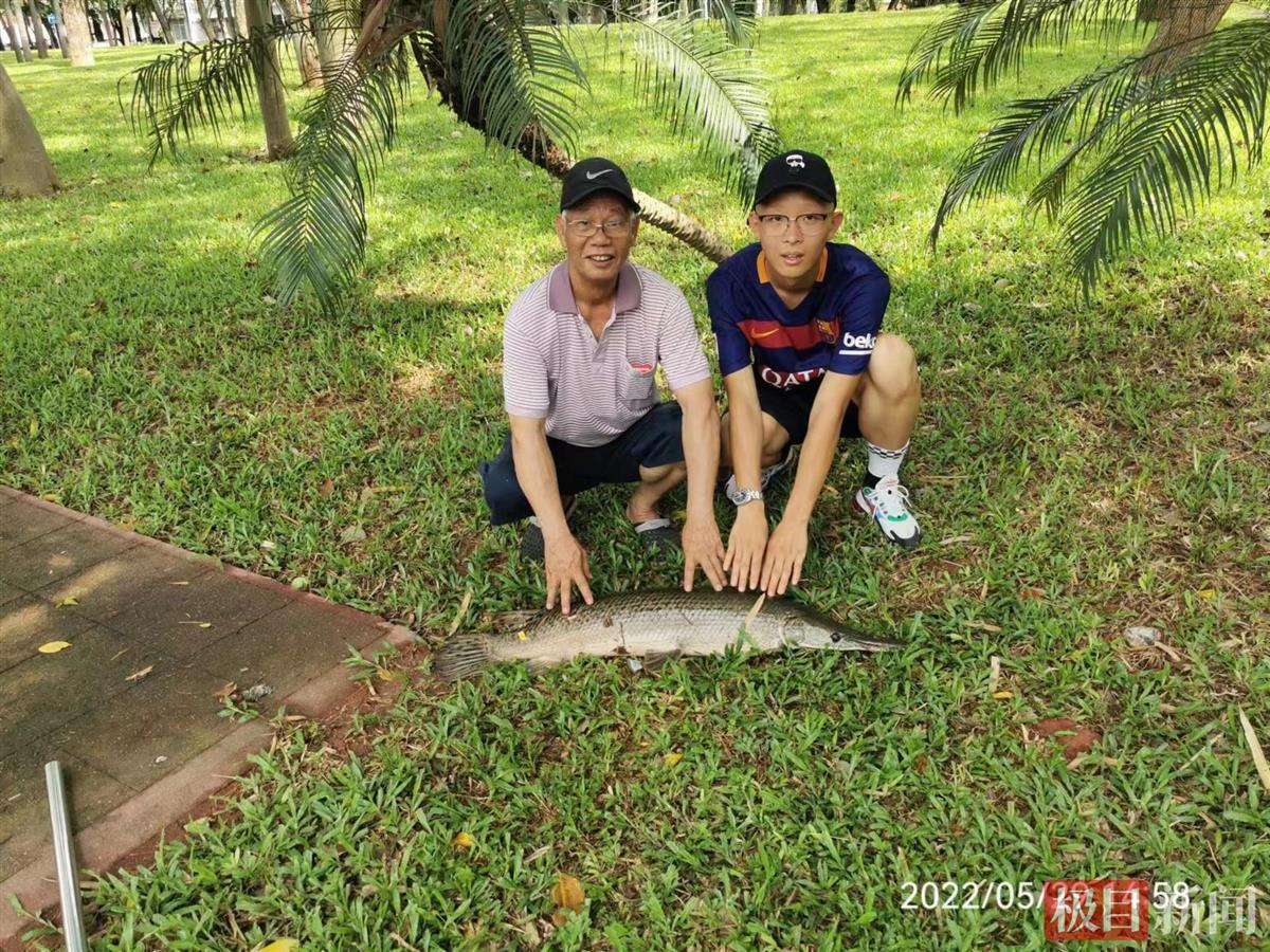 近日,广州中山大学的梁同学在校内的湖泊中发现了一条凶猛的“水中杀手”鳄雀鳝,意识到它会危害生态环境,他向学校保卫处等反映了这一情况。5月29日,他和保卫处退休干部朱大叔一起,将该鳄雀鳝钓起。
