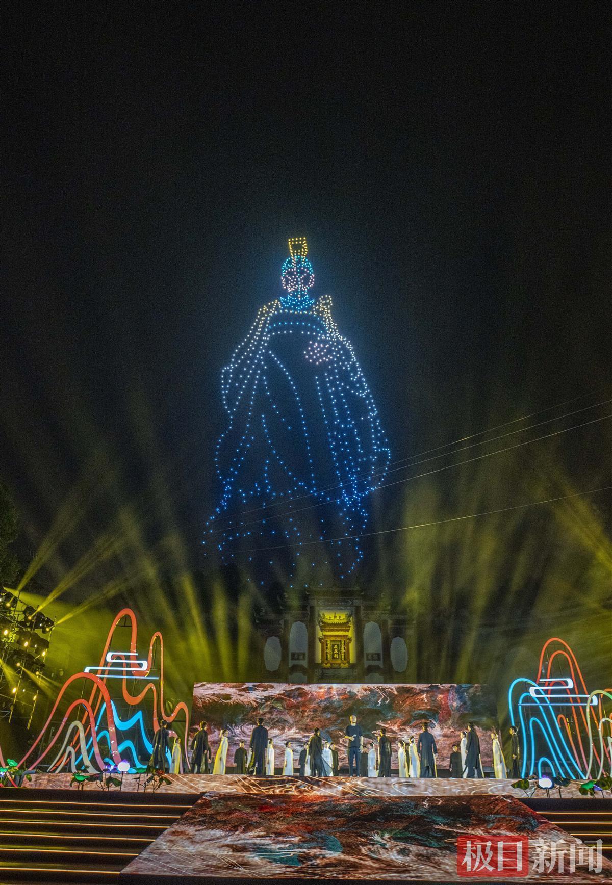 随后,大型原创音舞诗画《楚辞里的中国》惠民演出精彩上演,歌舞、鼓乐、杂技、说唱等15个形式多样的节目,为海内外观众带来了一场文化视听盛宴。特别是以屈原及其作品为核心创作的《屈原》《橘灯漫天》《上下求索》《离骚》《兮士争先》《还是楚辞》等节目,构筑了《楚辞》里走出来的独特浪漫,弘扬了屈原深沉的家国情怀和求索精神。整场演出将高峡平湖、三峡大坝、屈原祠实景与全息投影、虚拟XR、地平投射、无人机塑形、烟花秀等技术高度结合,全面呈现了《楚辞》里美轮美奂的盛景。
