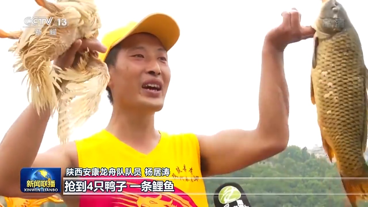 陕西安康龙舟队队员 杨居涛:抢到4只鸭子、一条鲤鱼,这也寓意着丰收、吉祥如意。