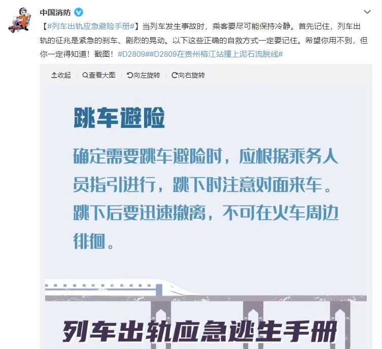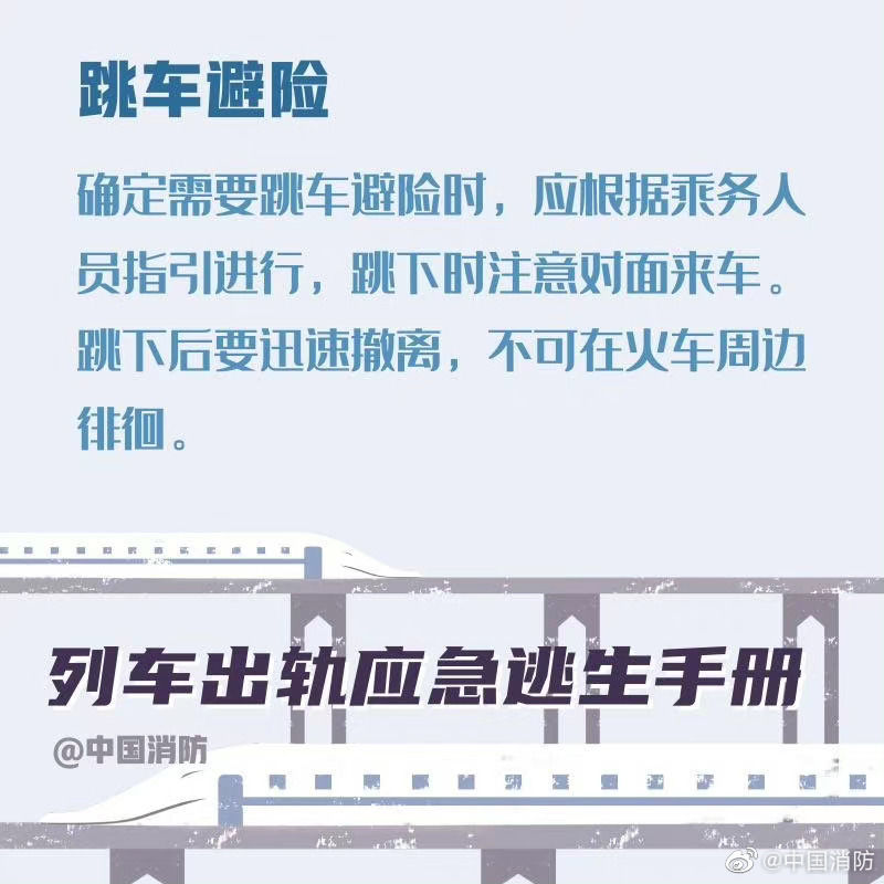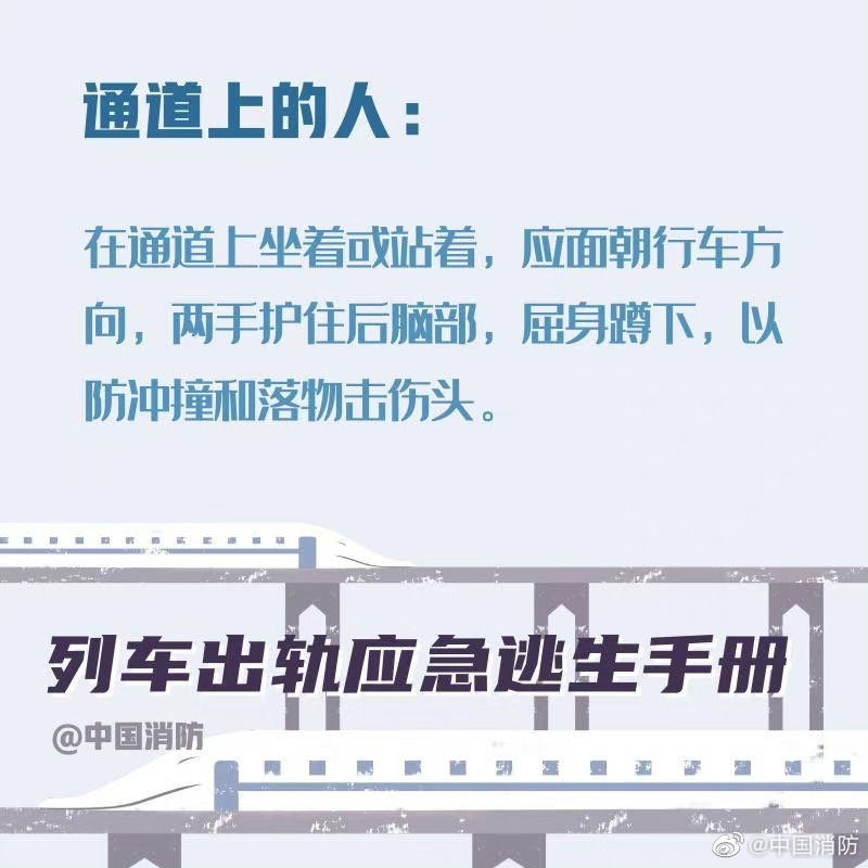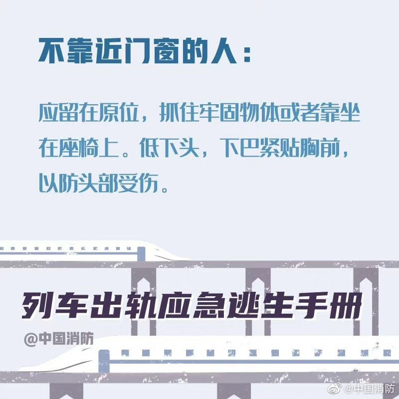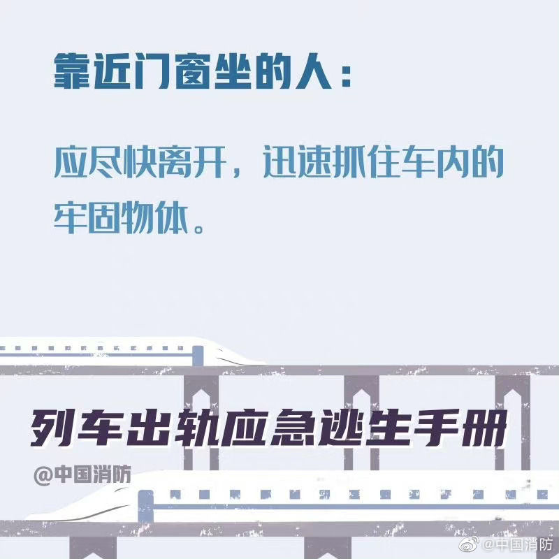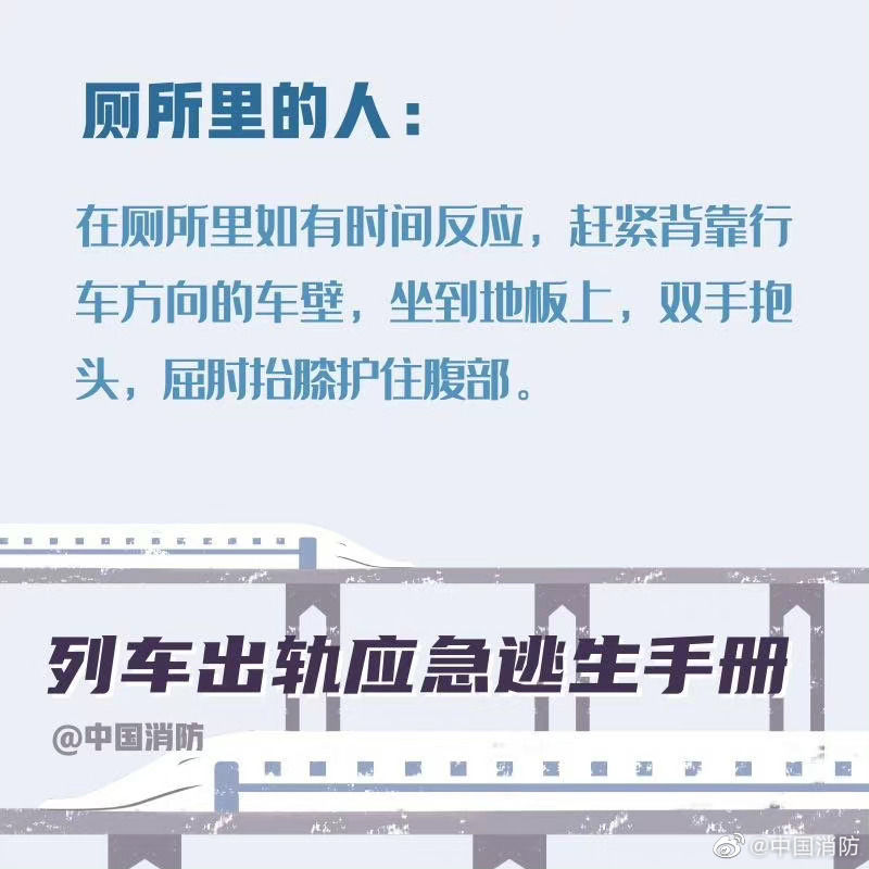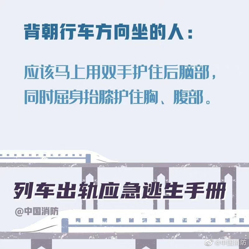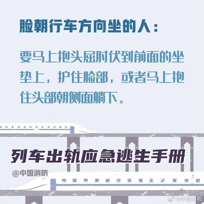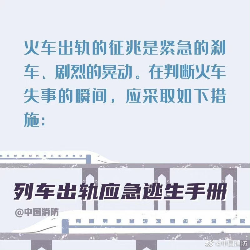 【列车出轨应急避险手册】当列车发生事故时,乘客要尽可能保持冷静。首先记住,列车出轨的征兆是紧急的刹车、剧烈的晃动。以下这些正确的自救方式一定要记住。希望你用不到,但你一定得知道!戳图!