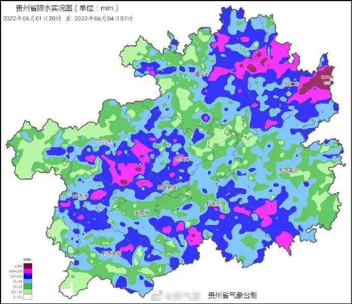 南方大范围区域累计雨量超过100毫米,局地超过400毫米。其中,贵州榕江等9县(区)域内的13个观测站,仅用了59个小时累计雨量超过300毫米,松桃县长坪甚至达到372.9毫米。