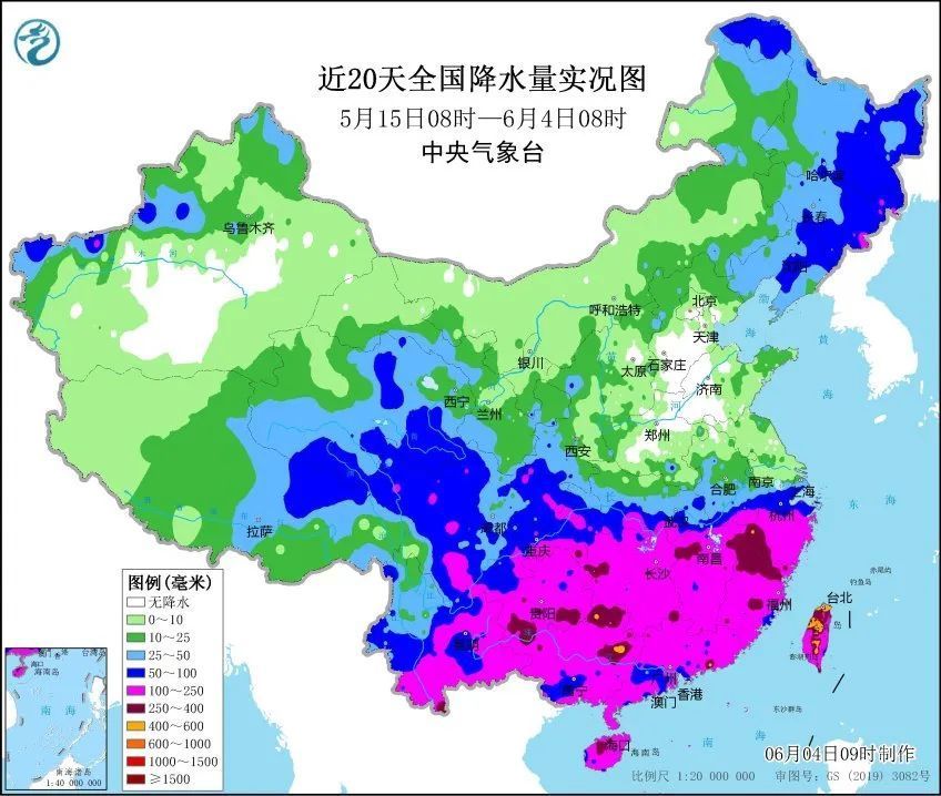 △5月15日8时至6月4日8时降水分布,图:中央气象台。