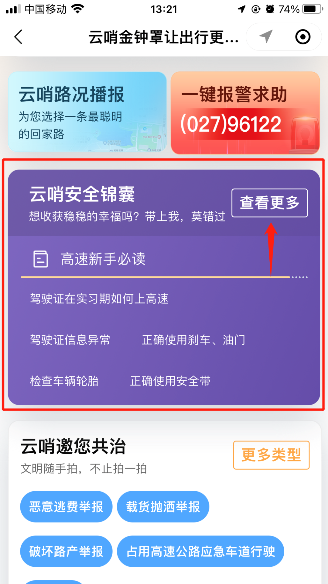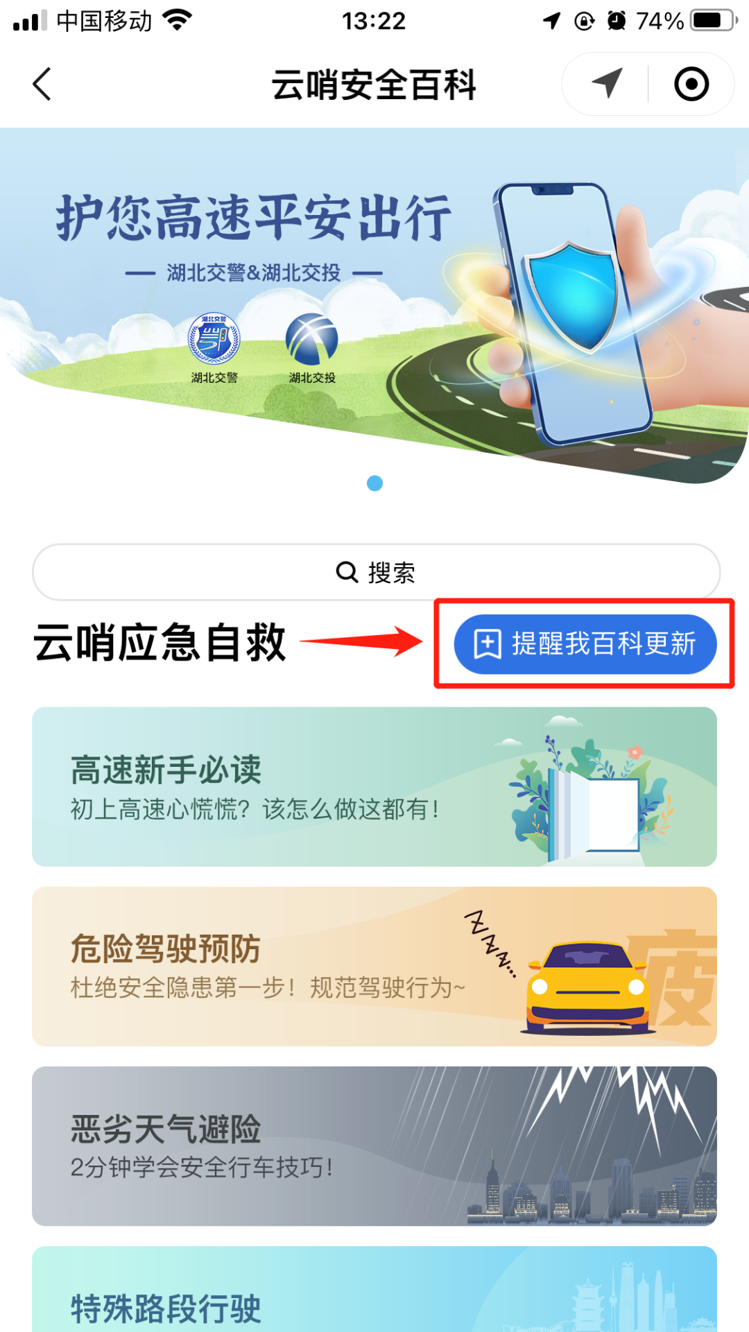 在“云哨金钟罩”小程序“云哨安全锦囊”板块,您不仅可以了解到各类危险驾驶的预防办法,还可根据相关功能获取恶劣天气避险、特殊路段行驶、突发事故处理等相关安全出行知识。