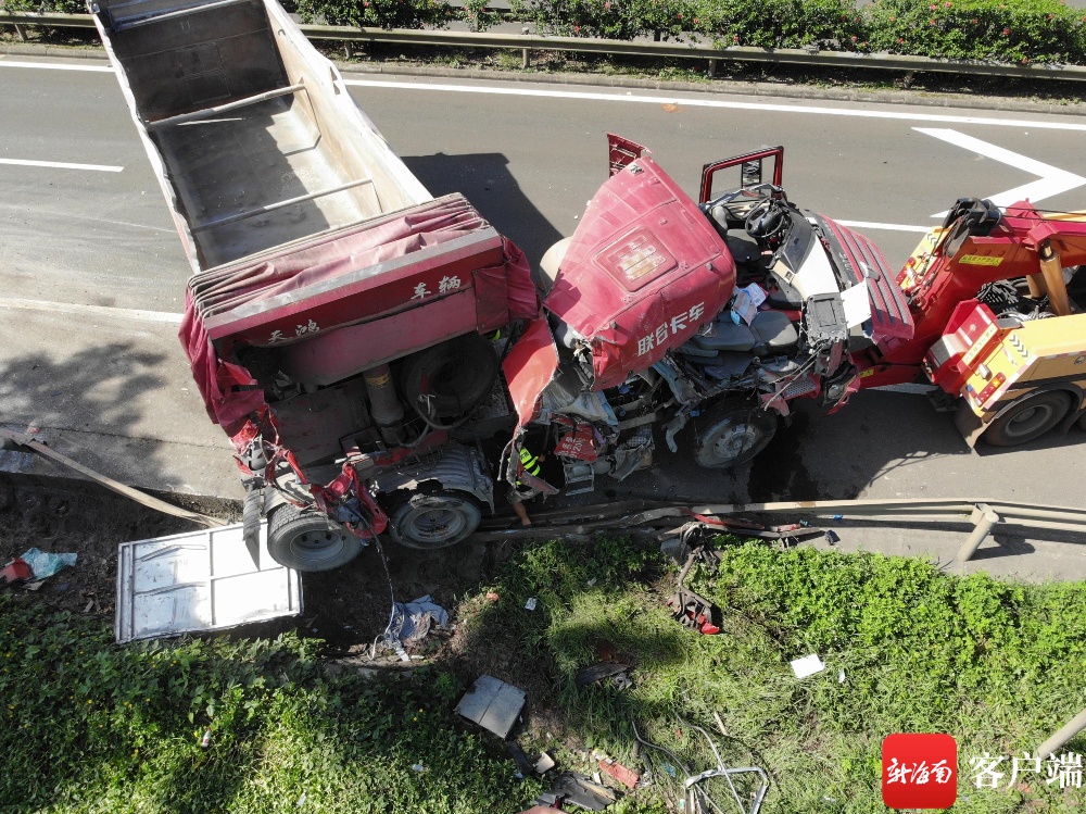 6时17分,消防救援人员到达现场,此时,交警已对现场进行了警戒,发生事故的LNG动力货车冲出路边护栏,车头严重变形扭曲,与车身几乎成直角斜停在高速路上,车辆撞击的碎片洒落一地,LNG动力货车气体管线已发生泄露,罐内LNG存储量约有250kg,所幸没有人员被困。