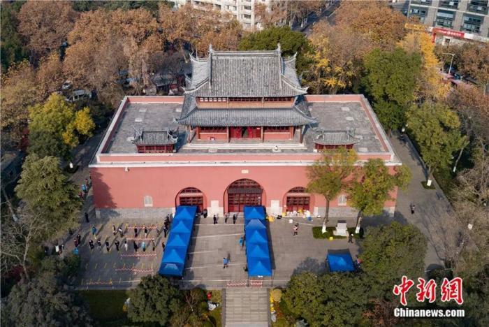 2021年12月,江苏省南京市,市民在一处核酸检测点进行核酸检测。中新社记者 泱波 摄