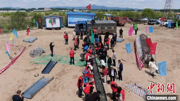 黑龙江省农业农村厅向兴凯湖内投放160万尾鱼苗。 张弛 摄