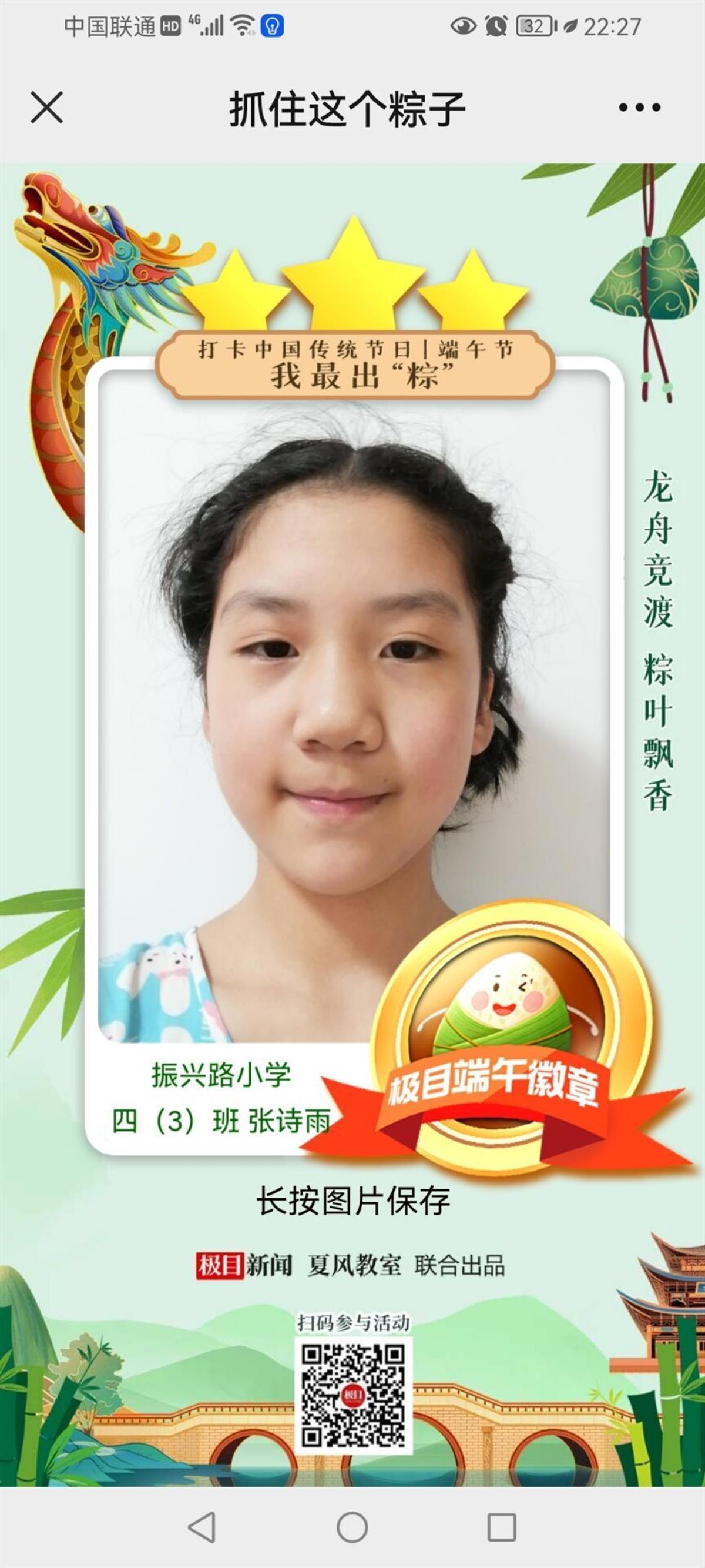 活动推出后,同学们根据自己的爱好和特长自由选择,并参与极目新闻推出的趣味诗词闯关答题——我最出“粽”活动。
