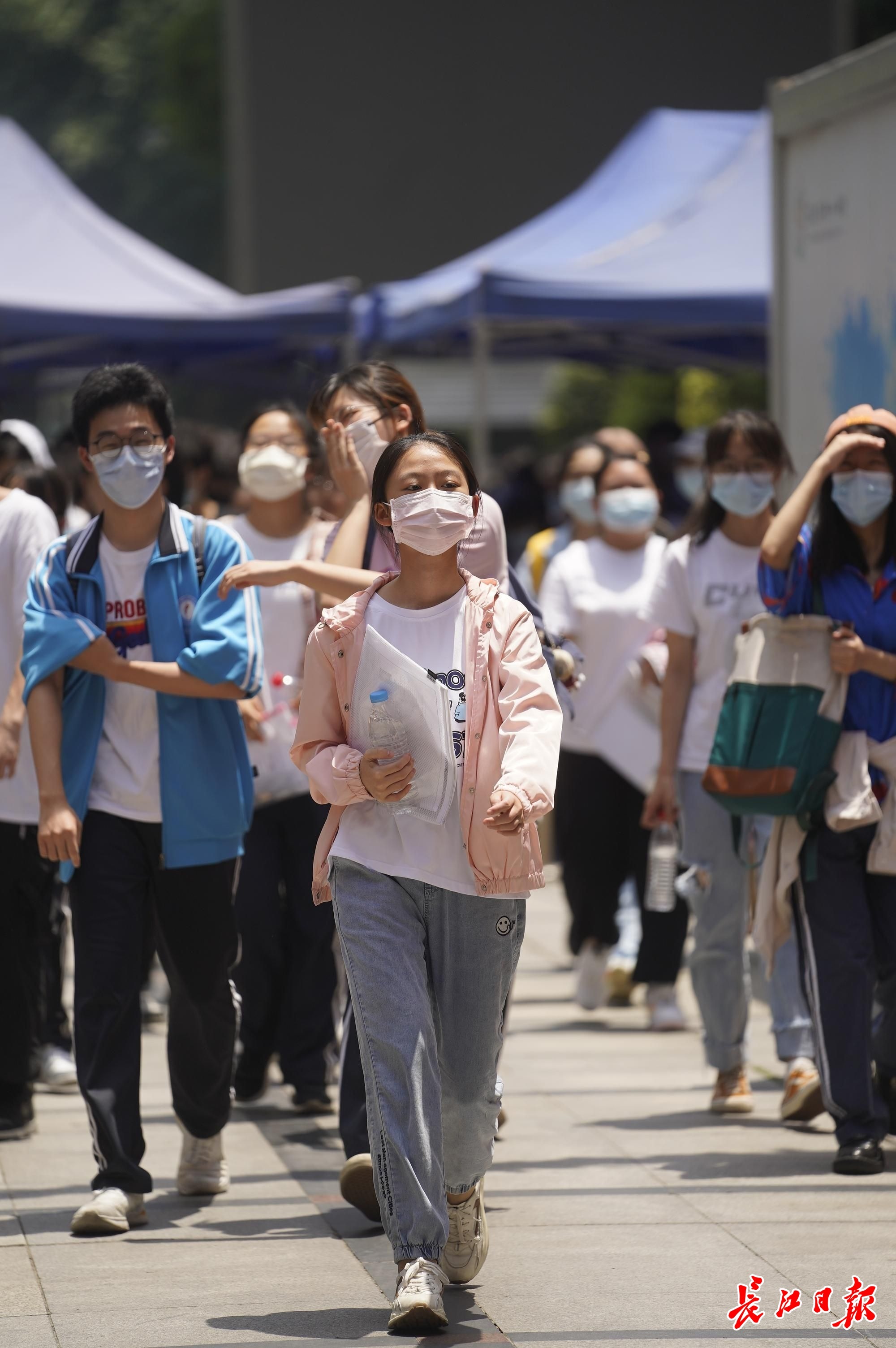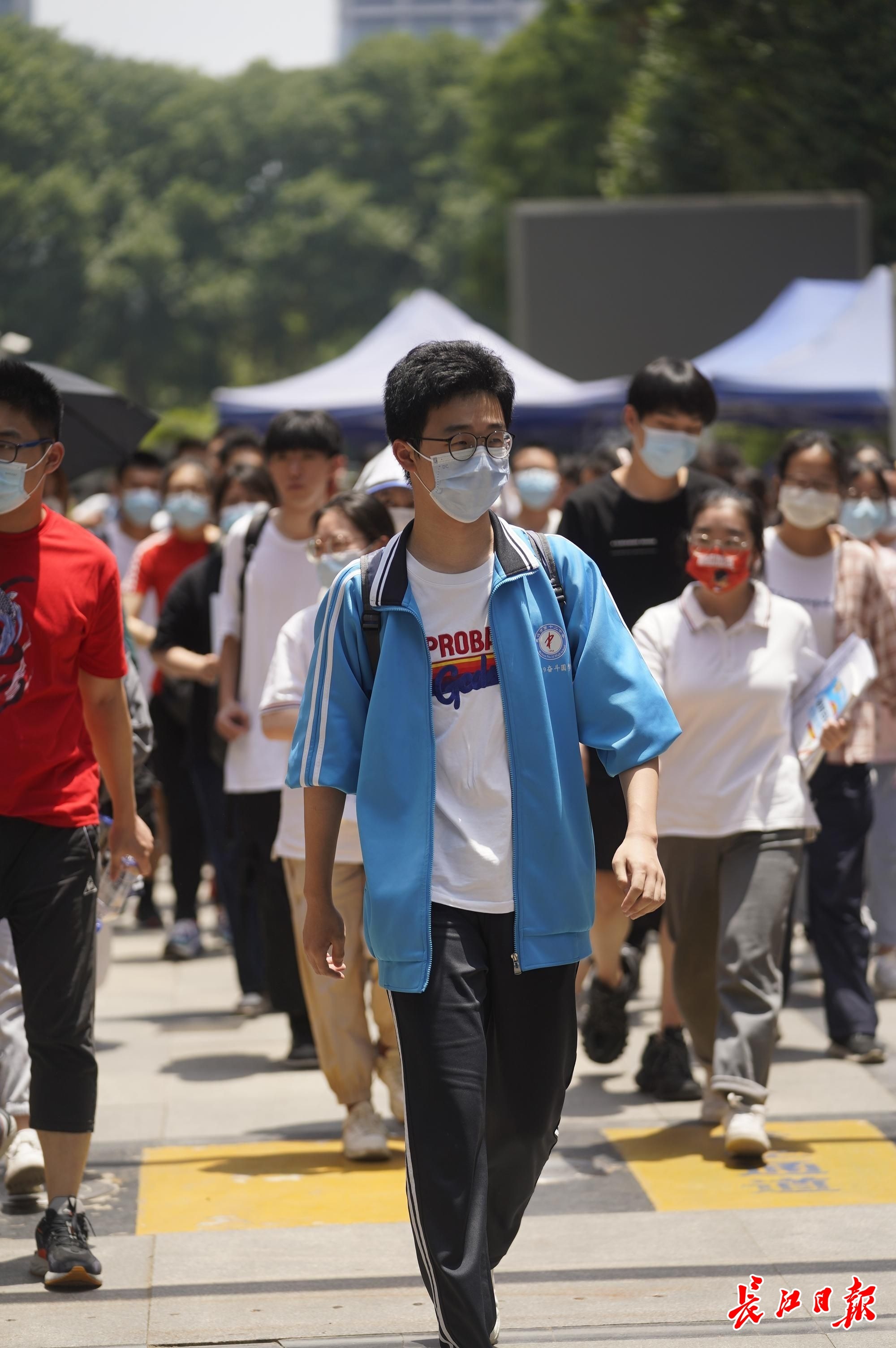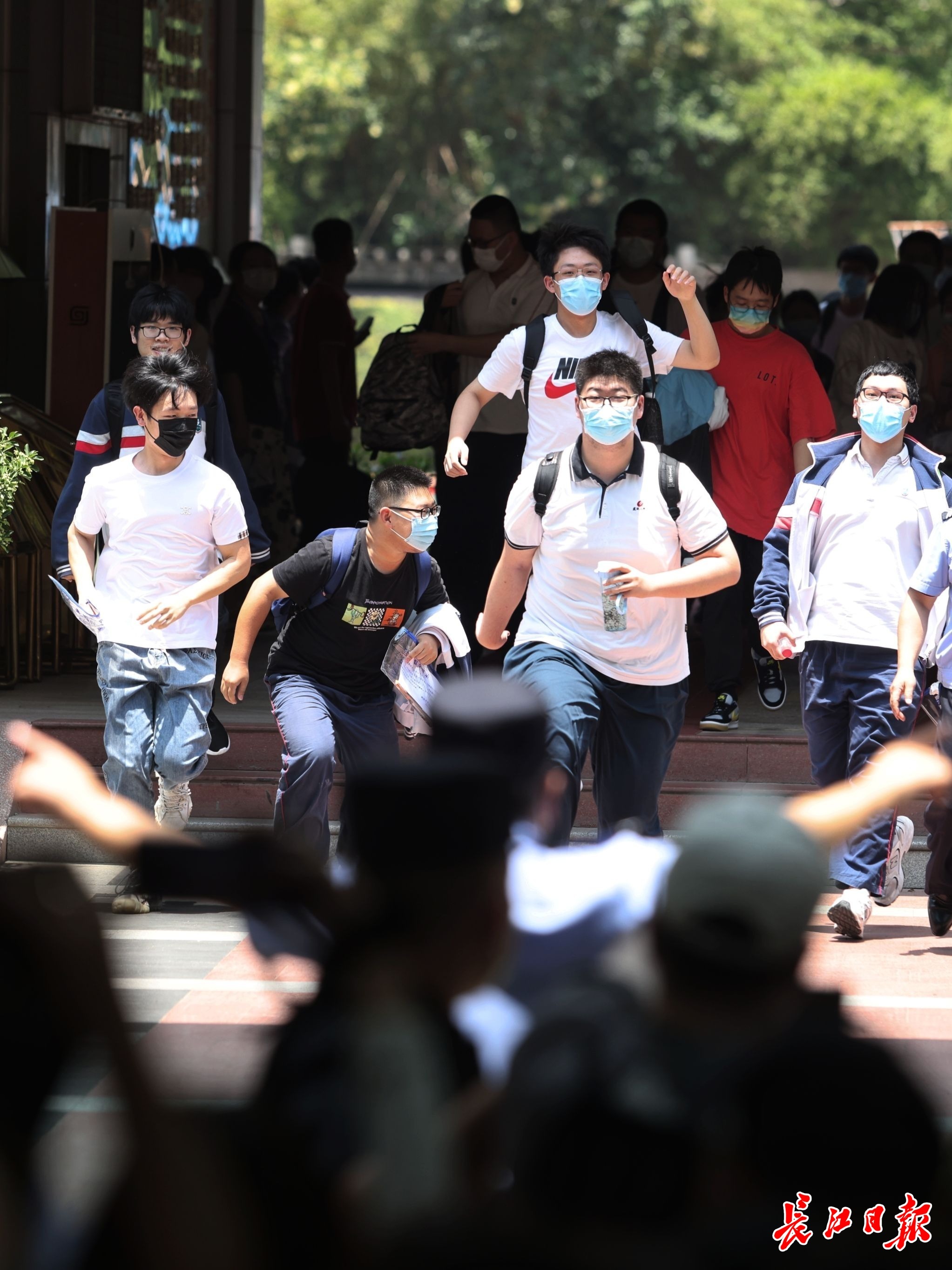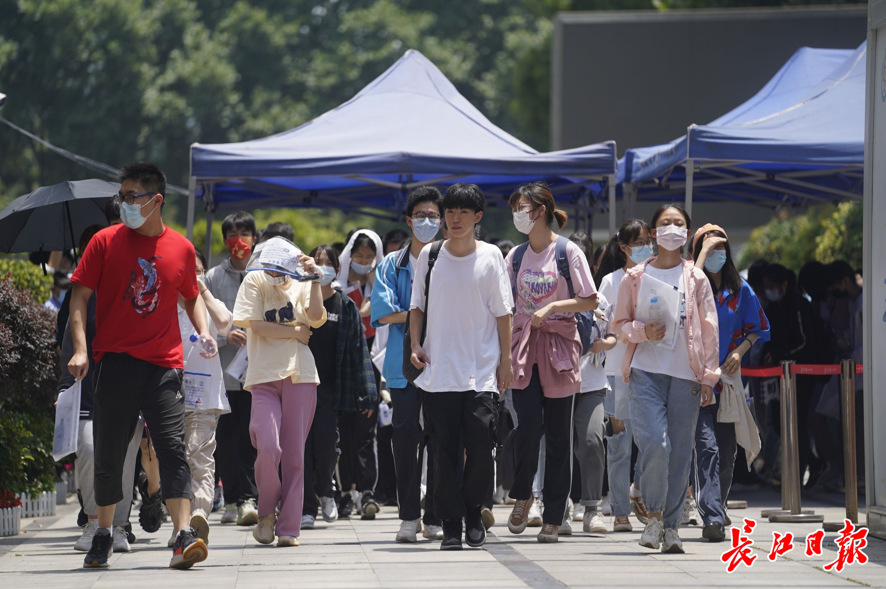 6月7日高考第一天,11时30分第一场考试结束。考生们轻松走出考场。