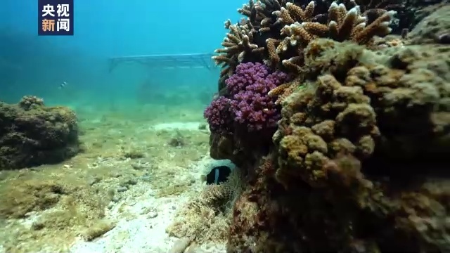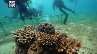 通过水下的画面可以看到,专家们正在水下进行珊瑚的种植。也能看到附近海底的小鱼们在他们身边游来游去,特别可爱。我们看到的铁架子,是由不锈钢以及铝合金等材料搭建而成的一个人工礁体,人工礁体是在海底种植珊瑚的一个苗圃,能够加快珊瑚的增长速度。