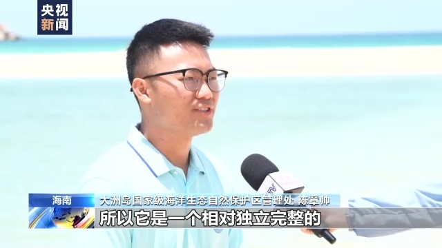 大洲岛国家级海洋生态自然保护区管理处 陈章帅:由于大洲岛远离陆地,所以它是一个相对独立完整的生态系统和生态链,所以保护好海洋生态环境与保护金丝燕息息相关。