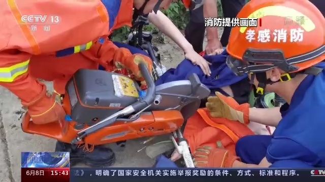 前几天,在湖北省应城市城北高桥村,一名男孩乘坐电动自行车时,不慎把脚卷进了车轮里无法取出,消防员到场后用衣服将男孩遮住,防止切割时对孩子造成伤害,然后使用无齿锯切割电动自行车车架。