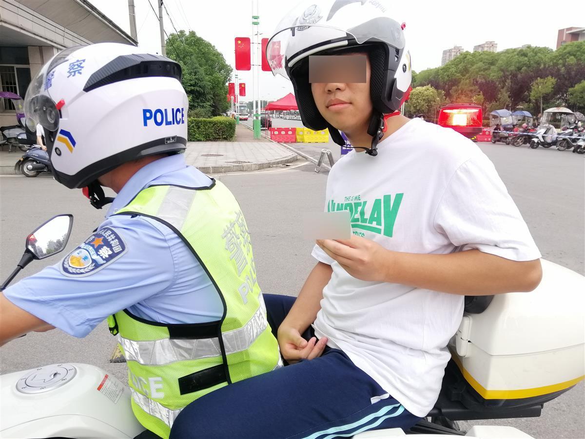 民警载着考生返回学校宿舍取身份证