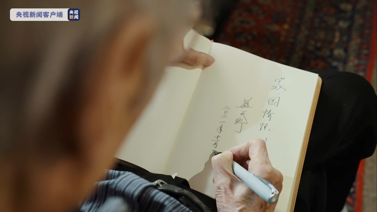 在《吾家吾国》节目专访的最后,他为主持人王宁写下“家国情怀”四个字,侧过头,看着王宁的眼睛说:“家与国,不就是一种情怀吗?”