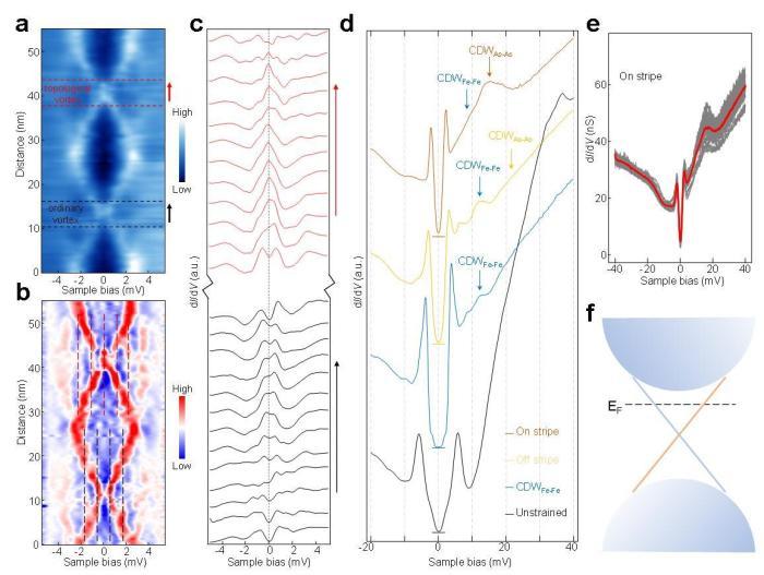 一是晶体中的自然应力可诱导产生双轴电荷密度波条纹,沿着铁-铁和砷-砷晶格方向,其波长分别为2.7纳米和24.3纳米。