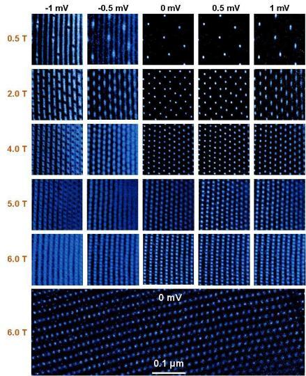 四是这种有序的马约拉纳零能模阵列可被外磁场调控,随着磁场增加,涡旋间距减小,马约拉纳零能模间的相互作用开始凸显。