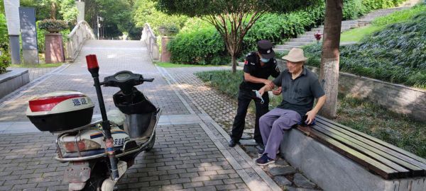 在等待家人前来的时间里,老人说他就住在公园附近的航天花园小区,平时天气好就会来公园走走转转。不一会儿,爷爷的老伴急匆匆地来到了王家墩公园,见到老人一边关心地询问摔跤情况,一边向公园保安连声感谢!考虑到老人摔跤后行走不便,保安队长杨海波安排保安队员与其家人一起将老人用手推车安全送至小区家中,老人与家人对公园保安热心帮助的行为表示万分感谢!