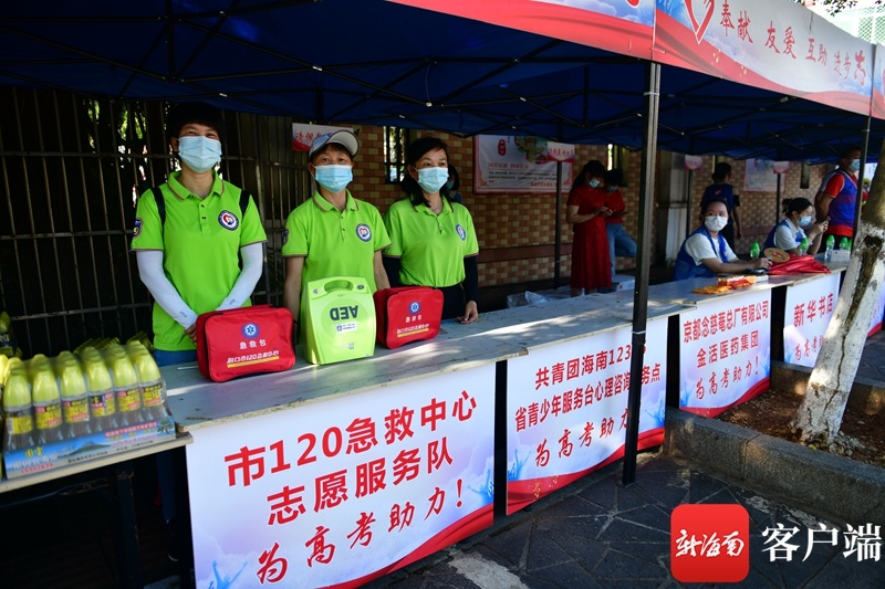 海南省农垦中学初中部考点,为考生服务的志愿者。记者 陈卫东 摄