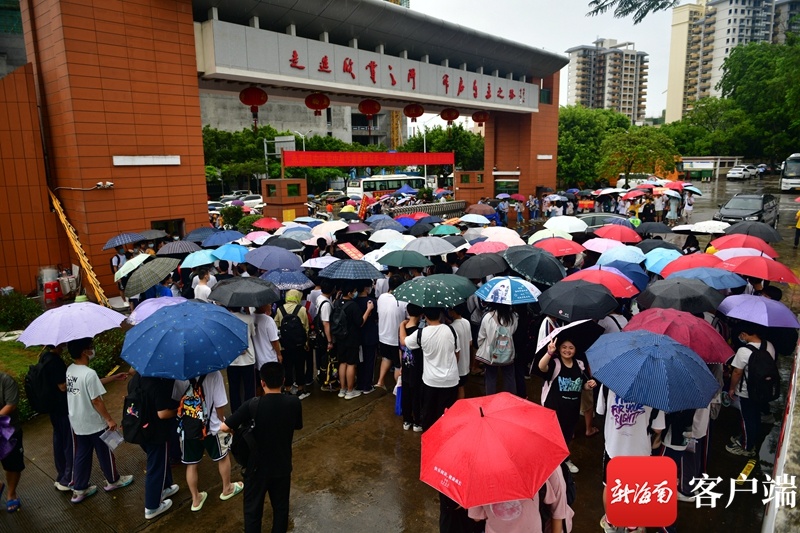 海南省农垦中学初中部考点,考试期间,经常下雨。记者 陈卫东 摄