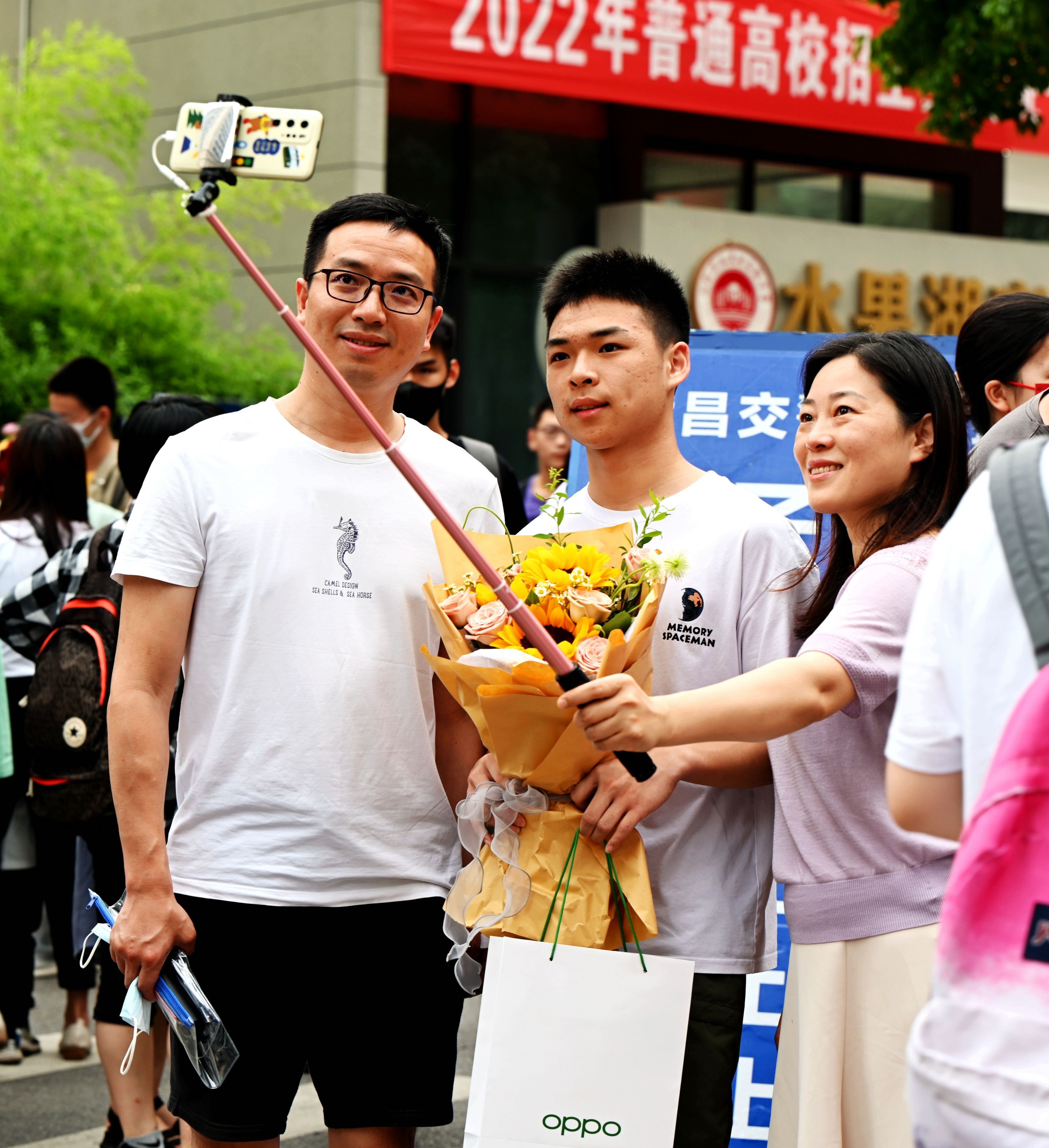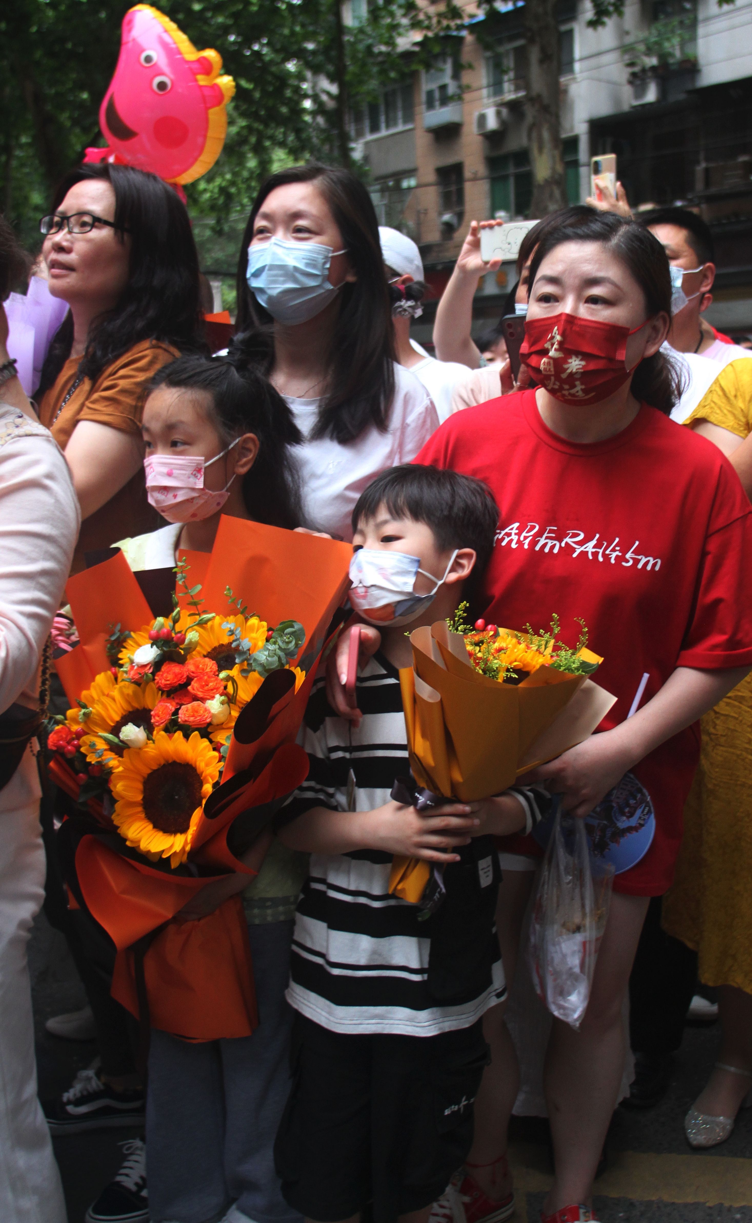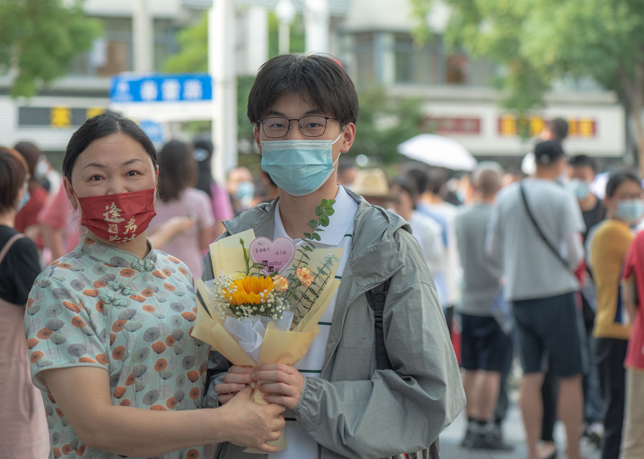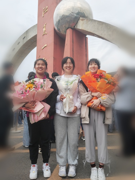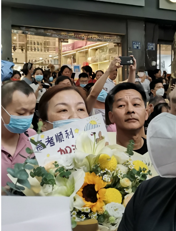 亲人们备好了鲜花,迎接凯旋的孩子。送你一朵向日葵,你会一举夺魁。