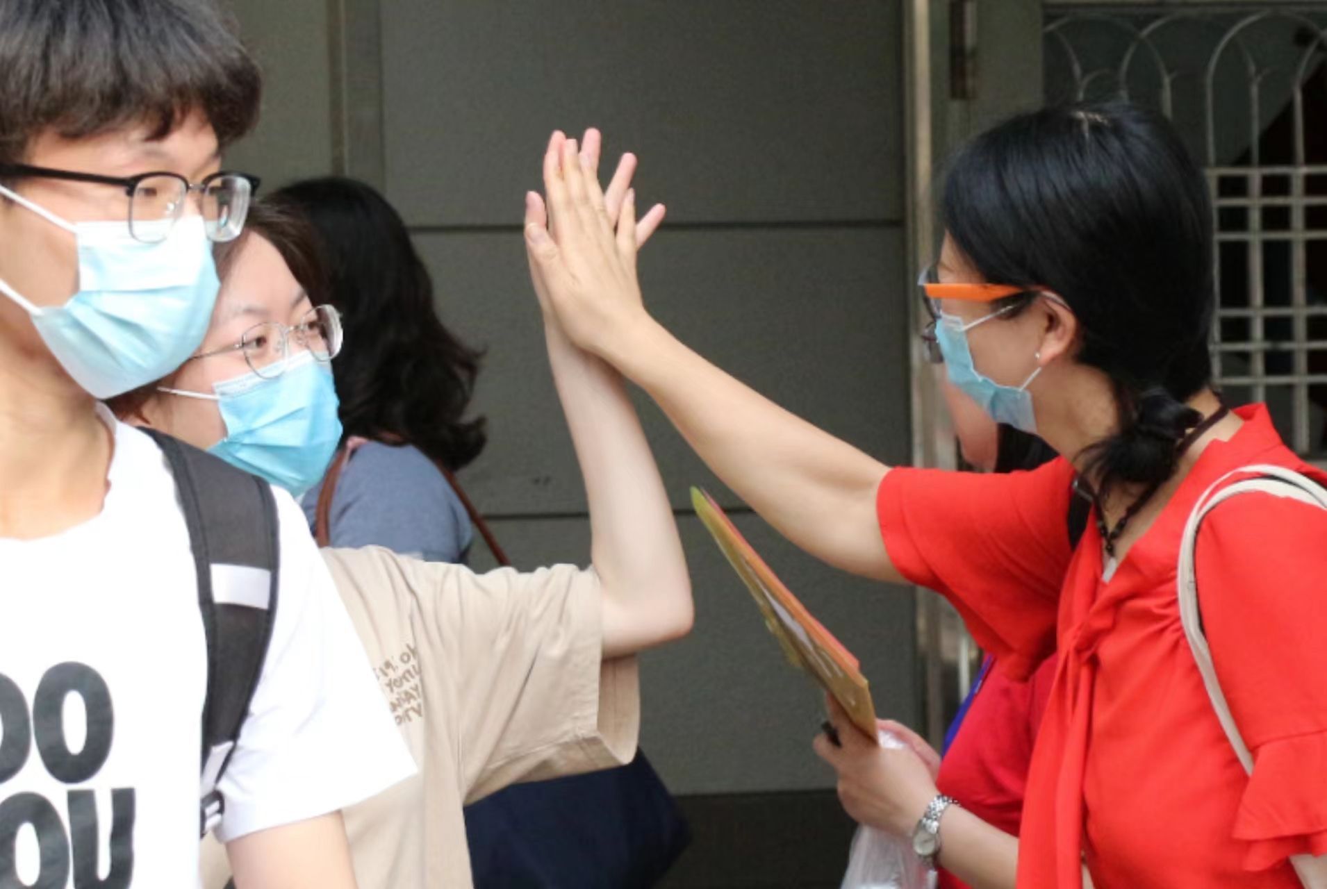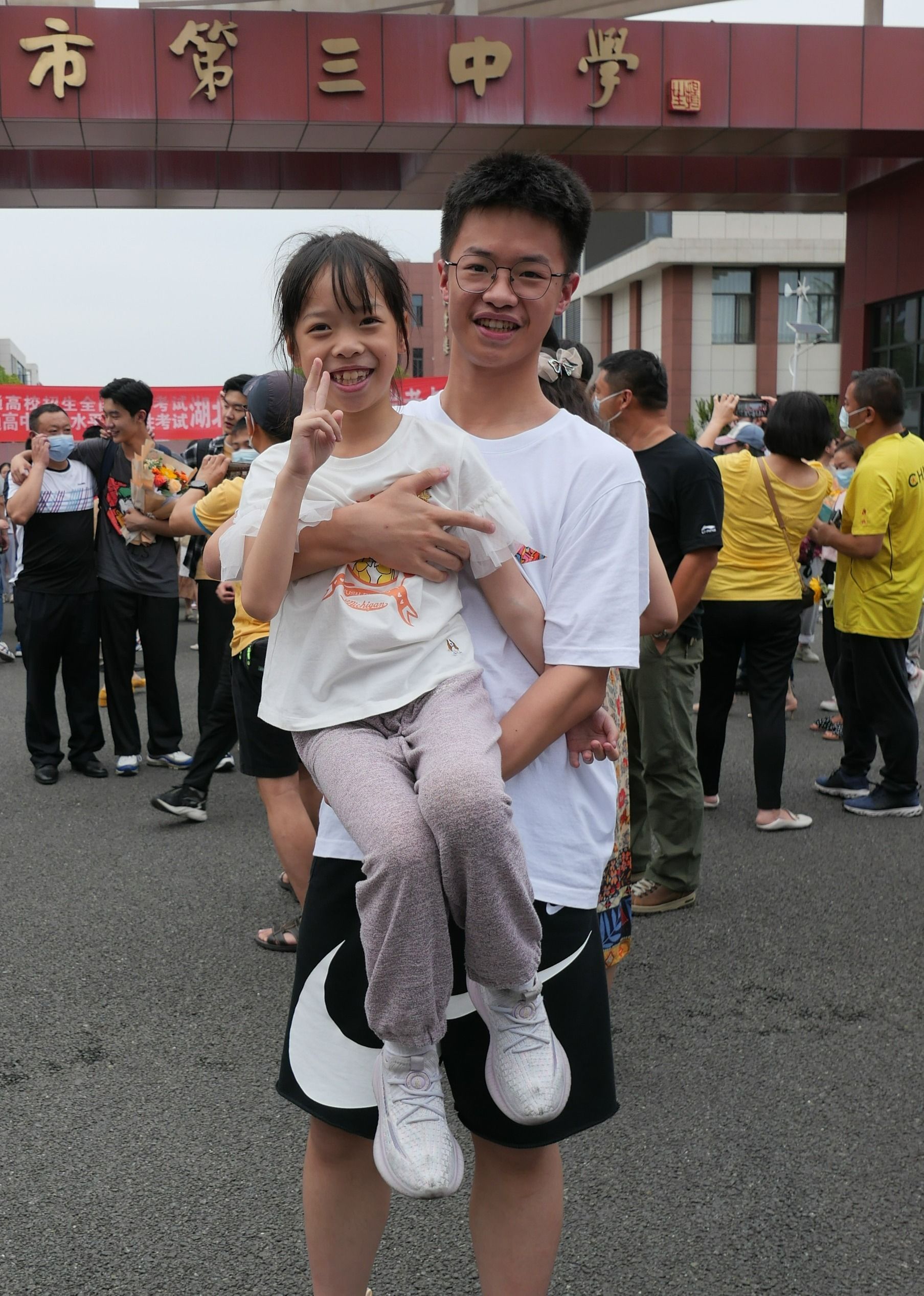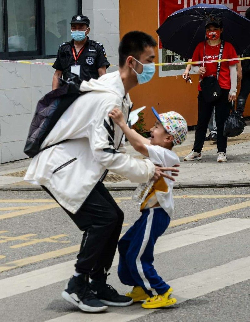 弟弟妹妹看到哥哥从考场出来,欢呼雀跃,“我看到哥哥啦!”