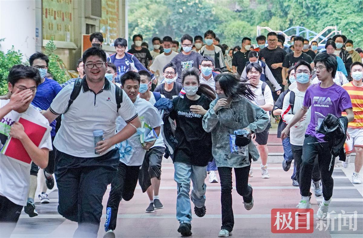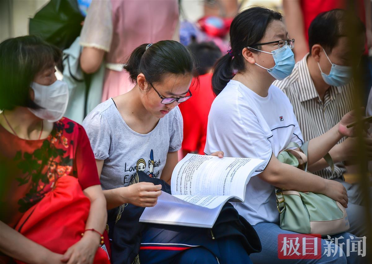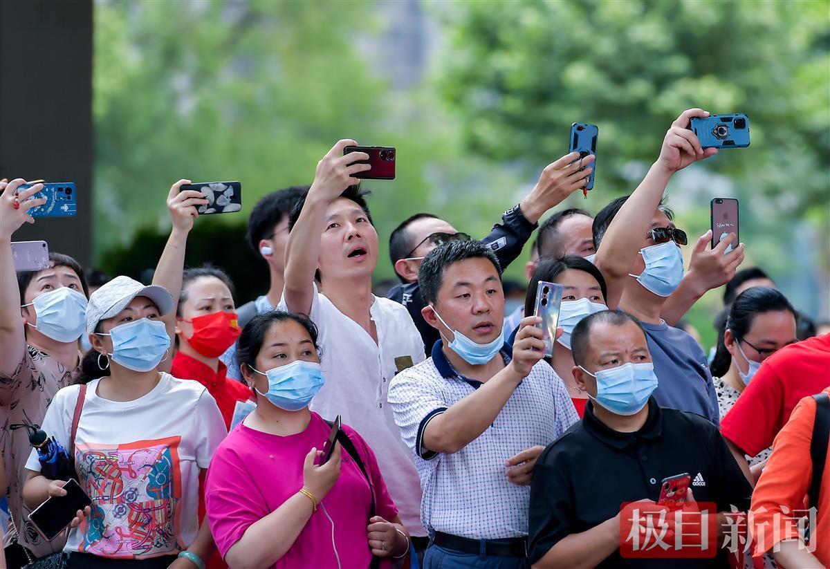 考生离场时,家长们早早就将镜头对准自己的孩子