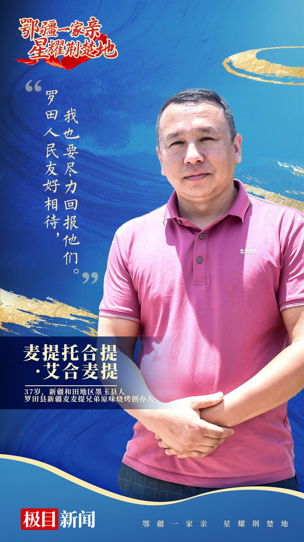 在罗田,当地人更喜欢叫他麦麦提,他也乐意人们这样叫他,因为“喊起来方便”。在罗田生活了14年,他已把这里当成他第二家乡。从摆摊烤羊肉串的小学徒,到生意做到黄冈黄石的小老板,麦麦提感叹:“我于罗田人民友好相处,也愿意贡献自己的微薄之力,回报罗田人民的帮助和成就。”