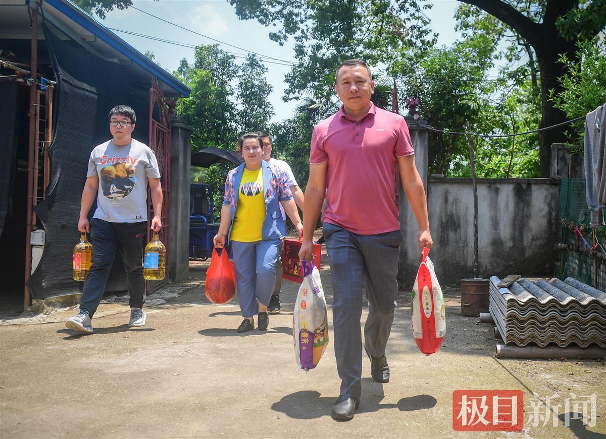 5月25日下午,麦麦提和妻子提着食用油、大米、西瓜和营养品,来到骆驼坳镇徐家垸村,这里有他曾经的5户精准扶贫帮扶户。