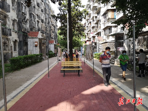 清理渣土、检整路床、夯实基础、铺设透水砖。近日,修葺一新的休闲区完工。新铺的透水砖整洁靓丽,新增的长椅整齐排列,崭新的晒衣杆让晾晒文明有序。爹爹婆婆们围坐在一起,有的聊天,有的摘菜,有的晒衣服。微风拂过,闲适悠然。陈明峰高兴地说:“我家住1栋2门,下楼就能和老伙计们谈天、下棋。活动场地就在家门口,太舒服了!”