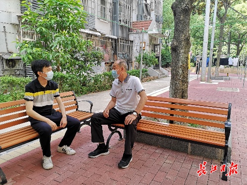 黄煜(左)正在和陈明峰交谈。 长江日报记者覃柳玮 摄
