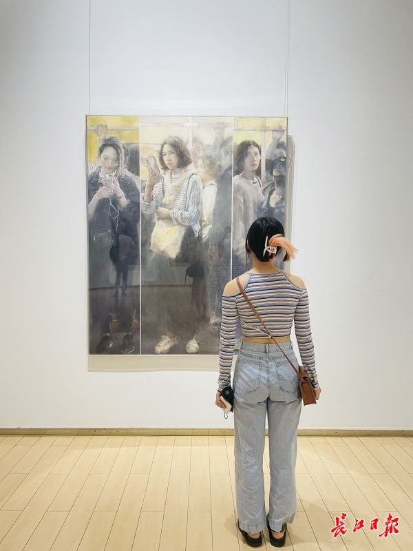 杨帆在作品《二号线》中展现武汉市民精神面貌。记者范雅琴 摄