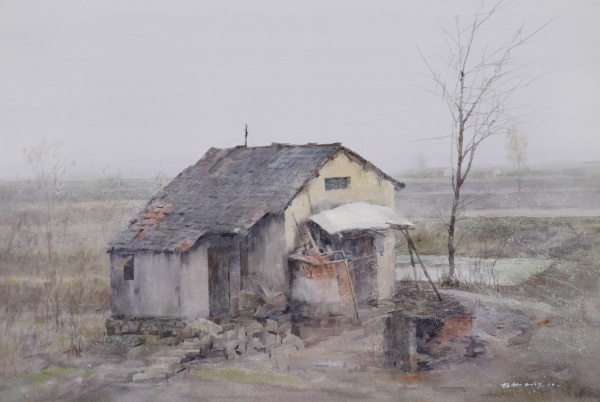 杨帆《平原暮色》纸本水彩54cm×76cm 2017