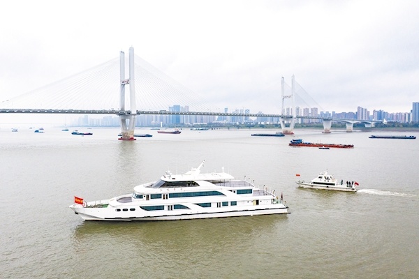 武汉市公安局水上分局、武汉市农业农村局农业综合执法支队的70余名执法人员,搭乘7艘执法巡逻艇奔赴各自执法水域执行任务。 (湖北日报全媒记者 魏铼 摄)