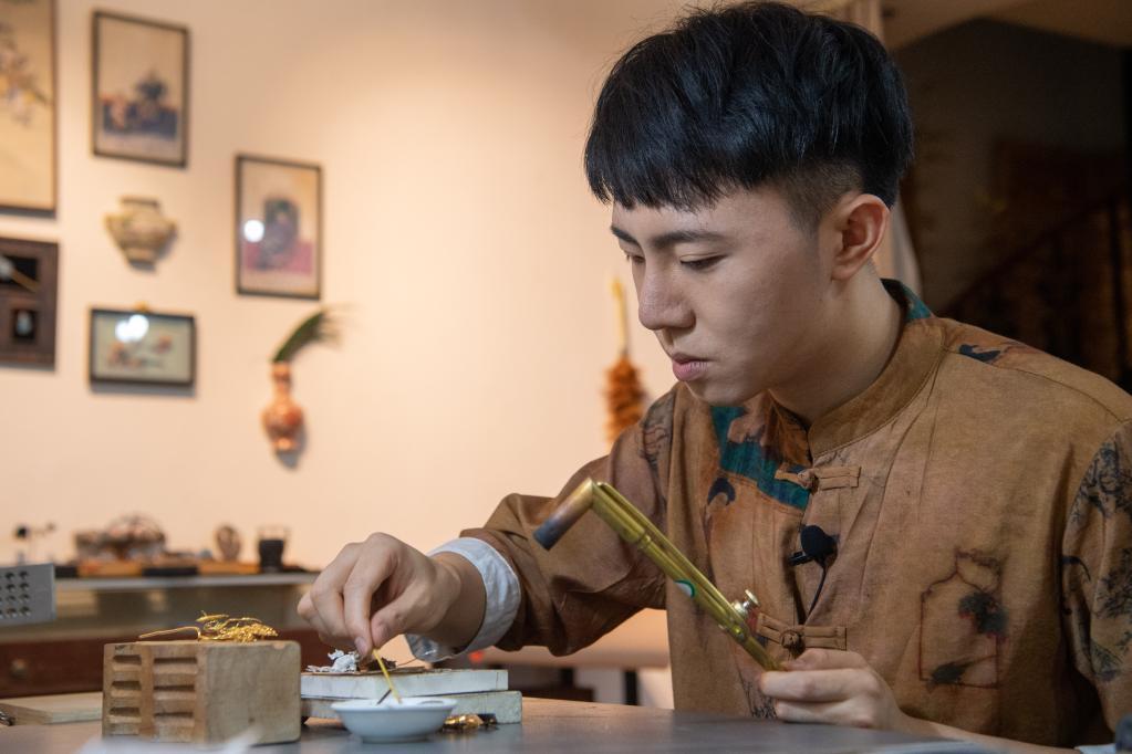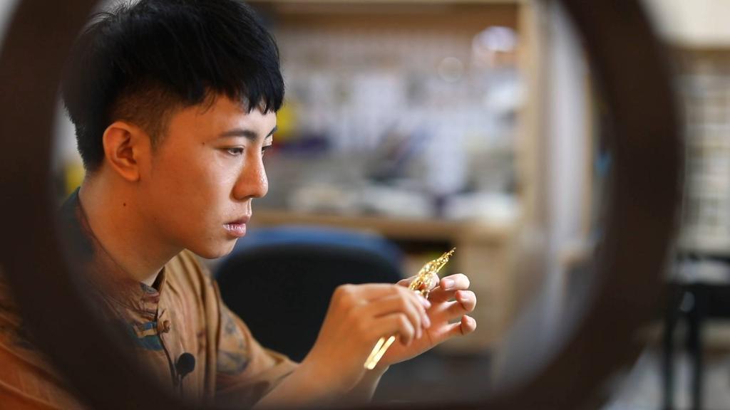 如今,辜国强的工作室一个月销售约300件花丝镶嵌作品,其中不少远销美国、日本等国家。越来越多的“Z世代”匠人加入工作室,成为文化遗产的传承者,以创新的眼光和手段重塑老技艺的未来。