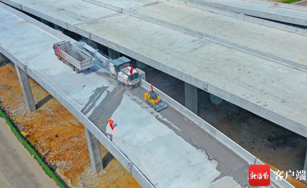 新海南客户端、南海网、南国都市报6月11日消息(记者 汪承贤)近日,记者在正在施工的G15沈海高速海口段看到,目前,工程进入桥面精铣刨作业,为铺设试验段沥青路面做准备。