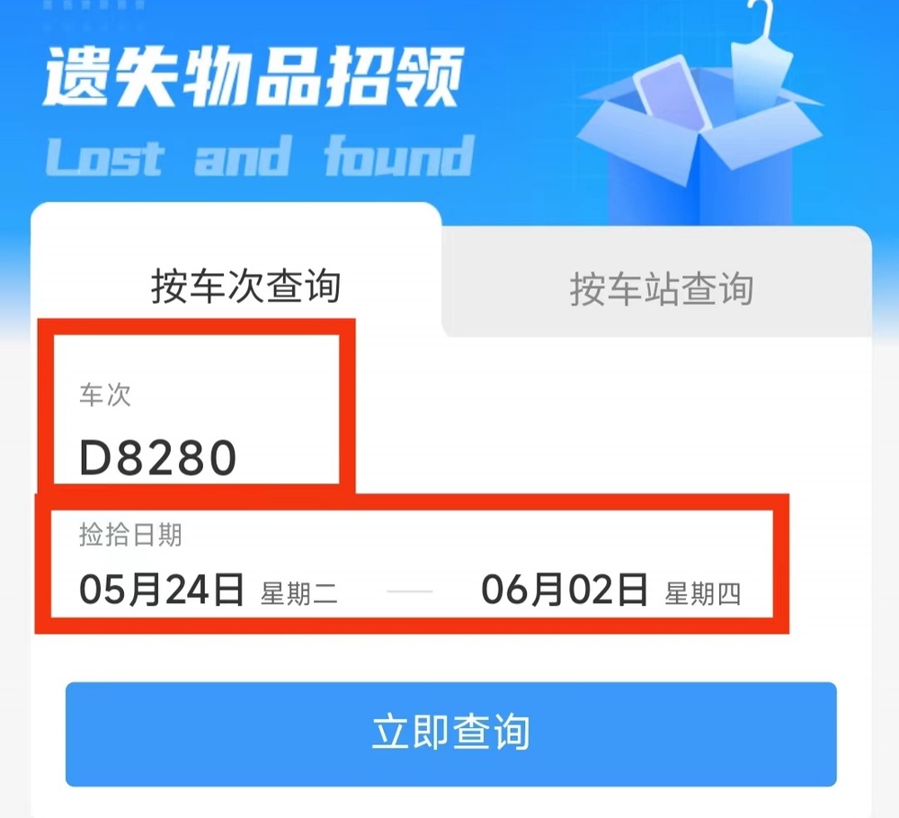 2. 在查询页面可以看到物品编号、捡拾日期、物品类别。点击相关条目,可以查看遗失物品具体信息,包括物品类别、暂存车站、物品内容、拾取地点、拾取时间。