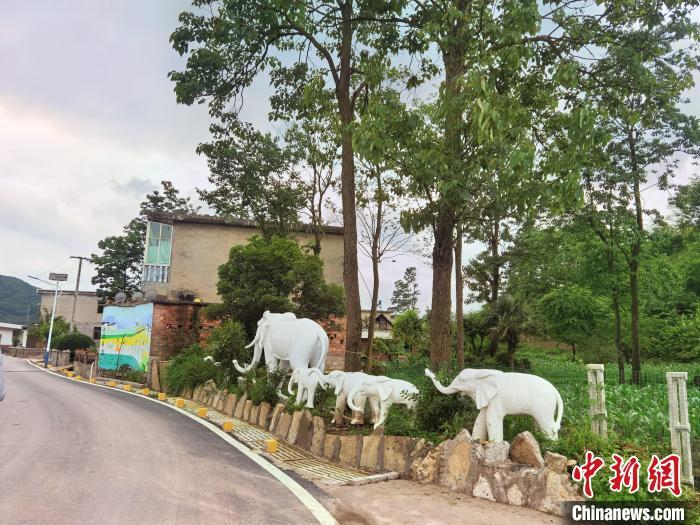 图为普陀村干净整洁的道路两旁的雕塑。 周燕玲 摄