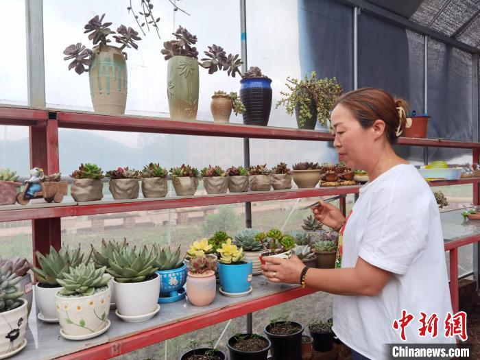 图为普陀村村民范美娥,在村里种植多肉植物。 周燕玲 摄